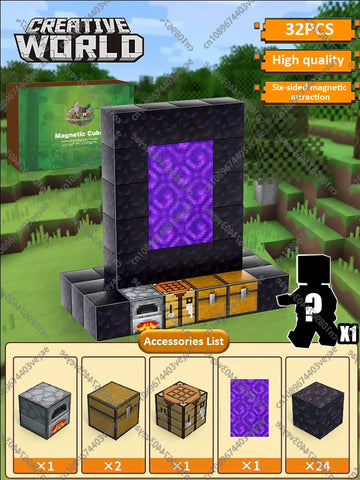 Magnetic Building Blocks Mine World Magnet Cube Set STEM Montessori Sensory Toy for Kids Boys Girls Ages 3+ DIY Model Children