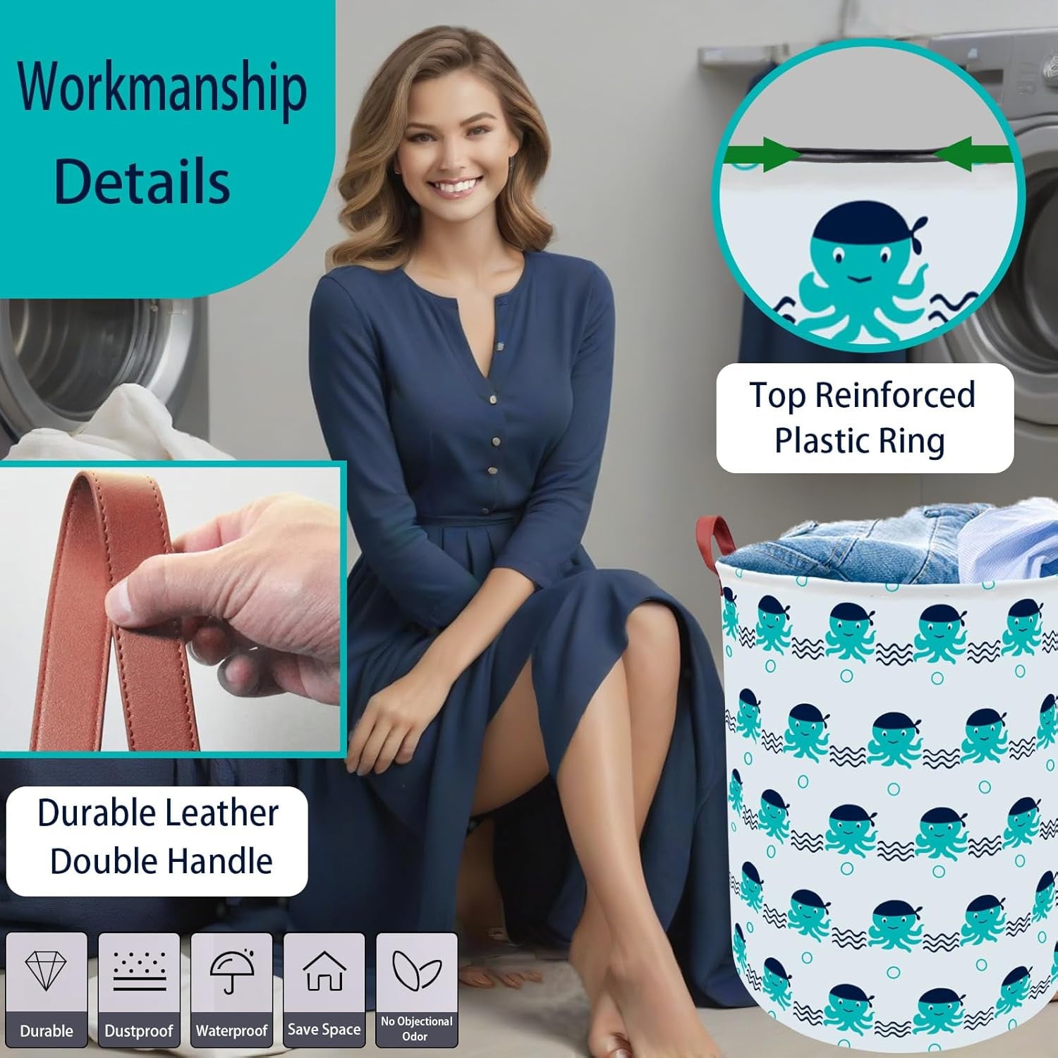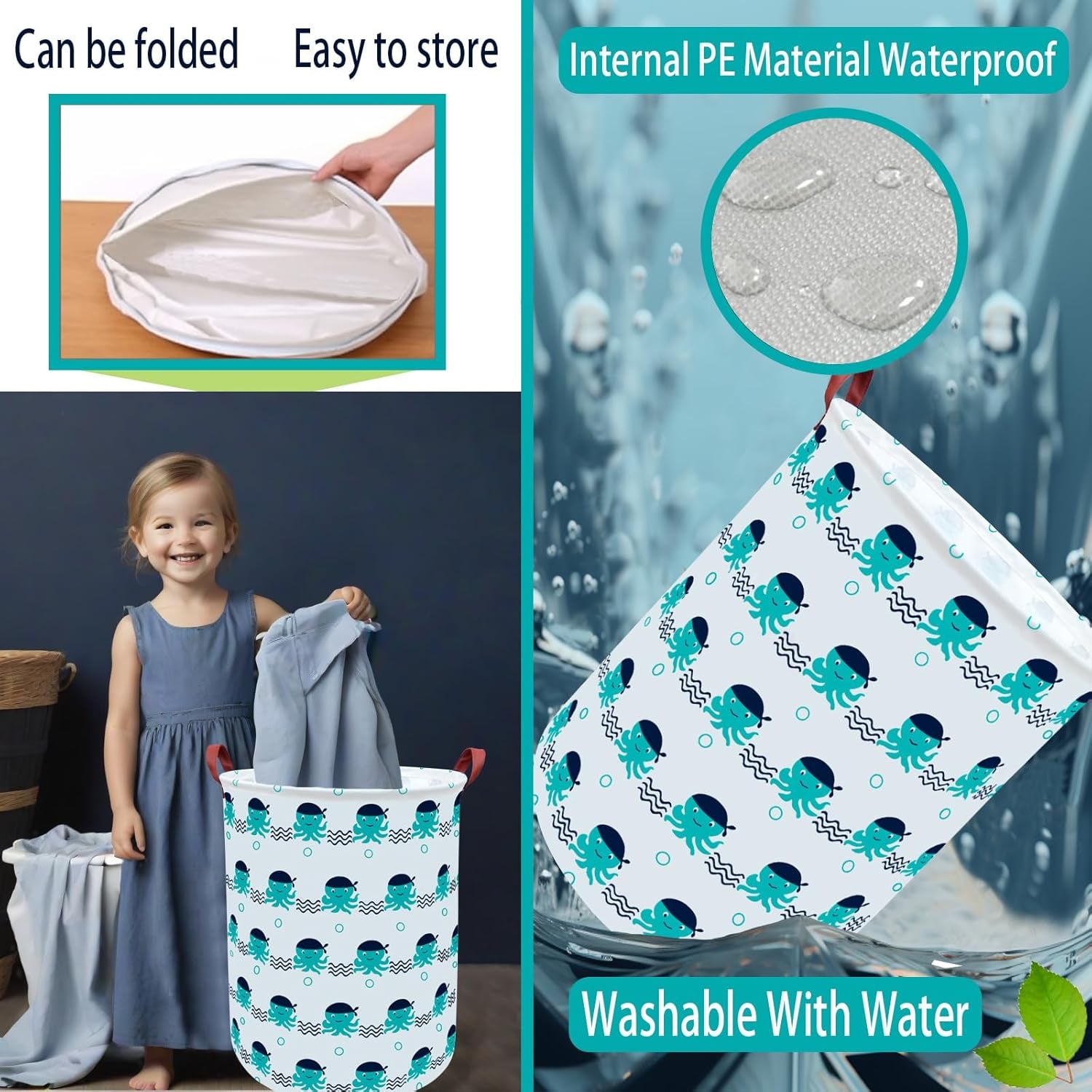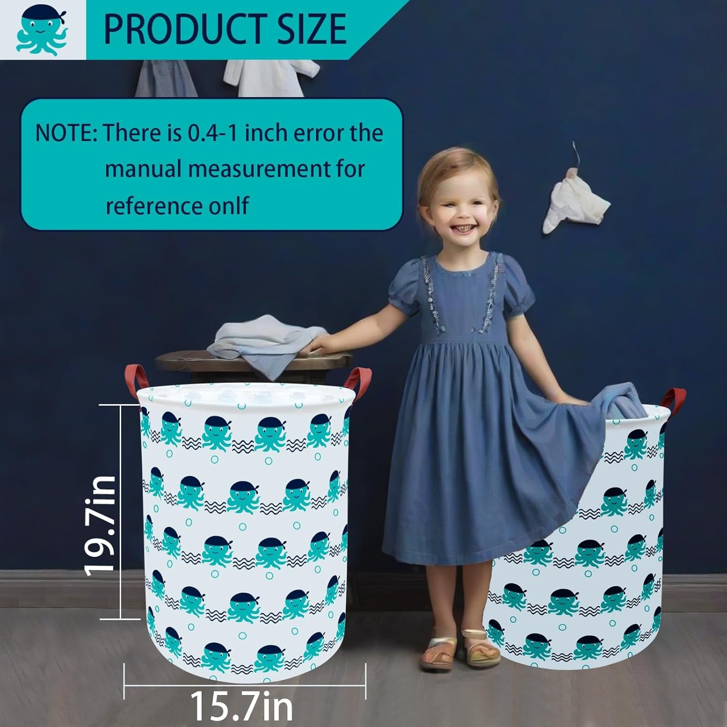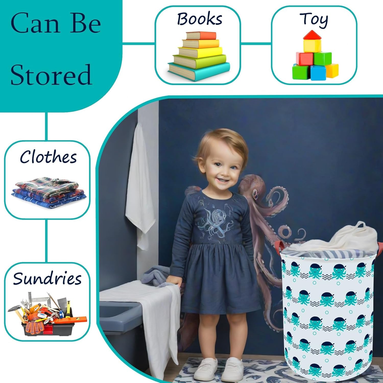 Cotton Fabric Storage Bin,Collapsible Laundry Basket-Waterproof Large Storage Baskets,Toy Organizer,Home Decor (Octopuses)