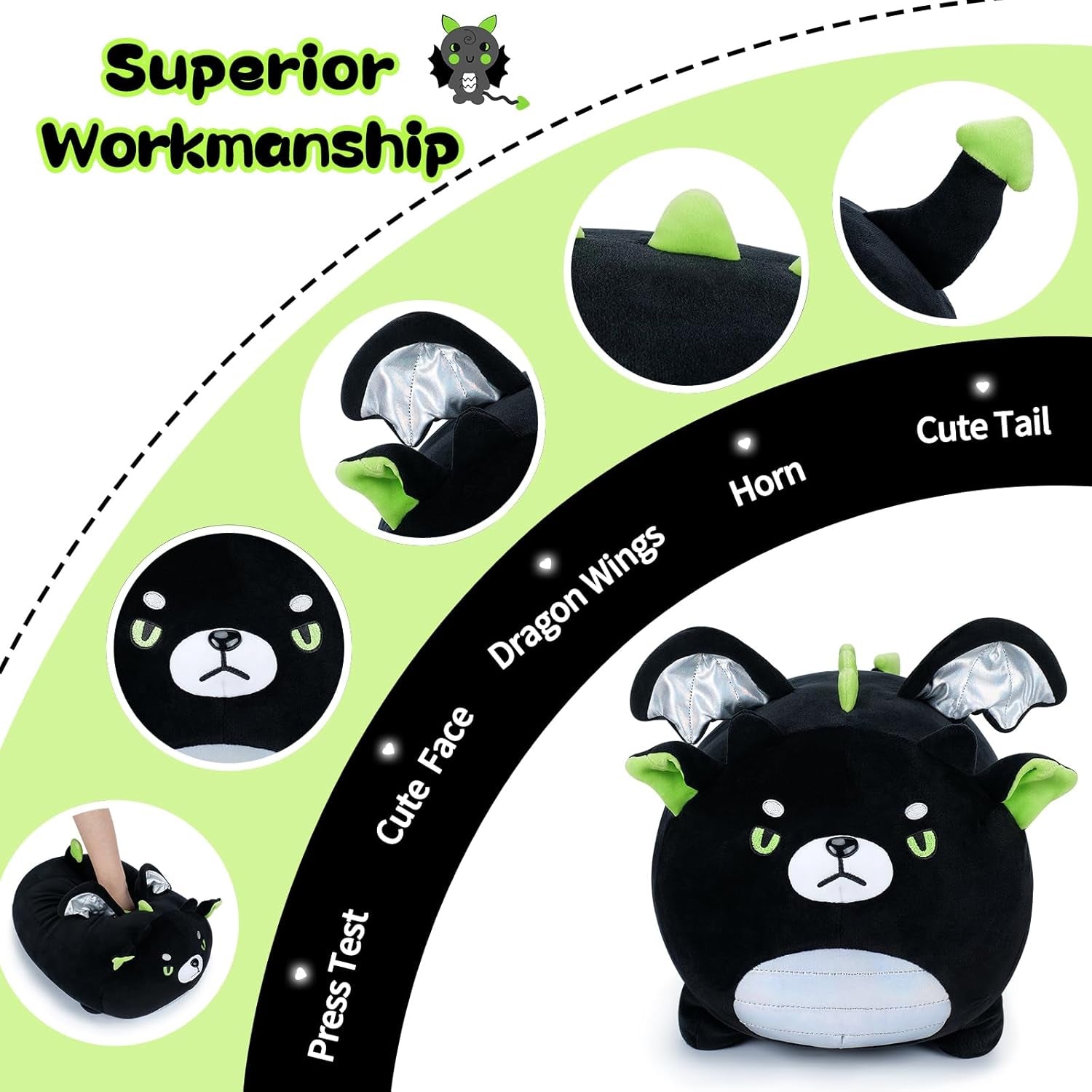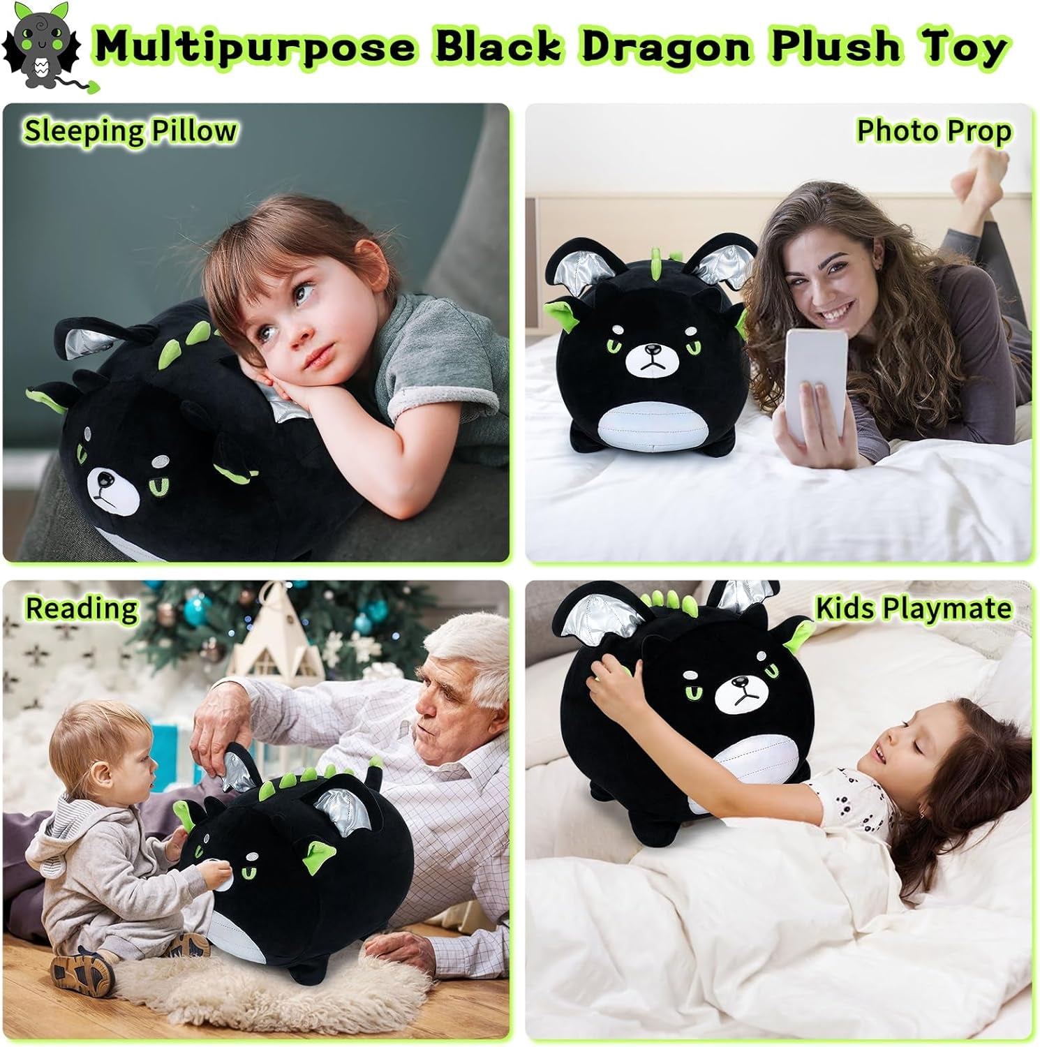 - 【Safety, Softness & Durability Material 】Our black dragon plushie pillow is crafted from stretchy super soft fabric filled with with plump pp cotton, which is softer than ordinary, when hold it in your arms, you will feel comfortable and elastic, with a smooth feel and delicate texture. Our fabrics of this kawaii dargon plush pillow have passed CPSIA certification ensuring safety. Moreover, our meticulous stitching process enhances this cat pillow toy's durability and prevents loose threads.