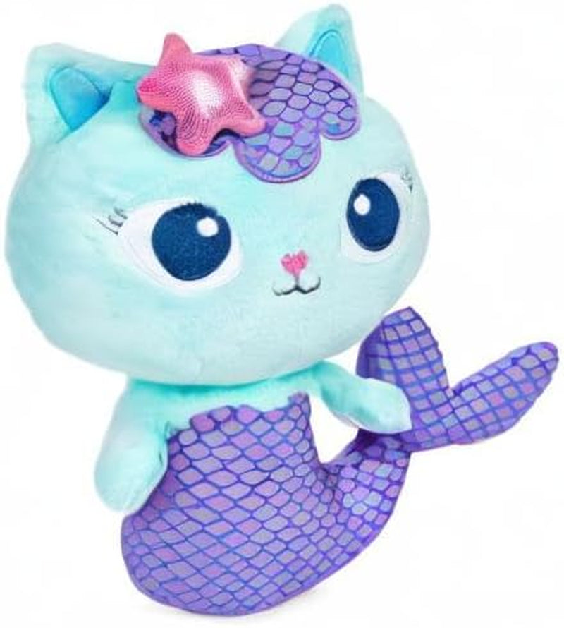 Bring home the irresistible kitty characters from Gabby’s Dollhouse with the Purr-ific Plush! This adorable MerCat plush toy features both metallic mermaid fabric and super soft fabric, and embroidered details, bringing Gabby’s cat-tastic friend to life. At 8-inches tall, MerCat is the perfect size for cuddles or playtime, at home or on-the-go! From Gabby’s best pal Pandy Paws’ signature pointy ears, Cakey Cat’s sweet sprinkle details, Baby Box Cat’s polka dot dress and more, each Purr-ific Plush stuffed animal (each sold separately) looks just like the character from the NETFLIX original series. Kids can collect all of the cuddly soft toys from the show and use their imagination to create their own adventures with their new plush pals. Snuggle up with the Gabby’s Dollhouse MerCat Purr-ific Plush!
