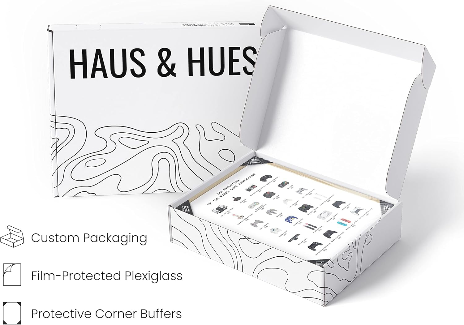 • PREMIUM WALL ART: To achieve the craftsmanship we’re known for, we use a printing technique on 8.5pt coated poster paper. The paper used for our gaming artwork is sustainably sourced, and our inks are water-based. gamer wall art is equipped with plexiglass covered by protective film and two metal hangers for horizontal or vertical hanging. The gaming wall decor is shipped in a durable box for protection in transit