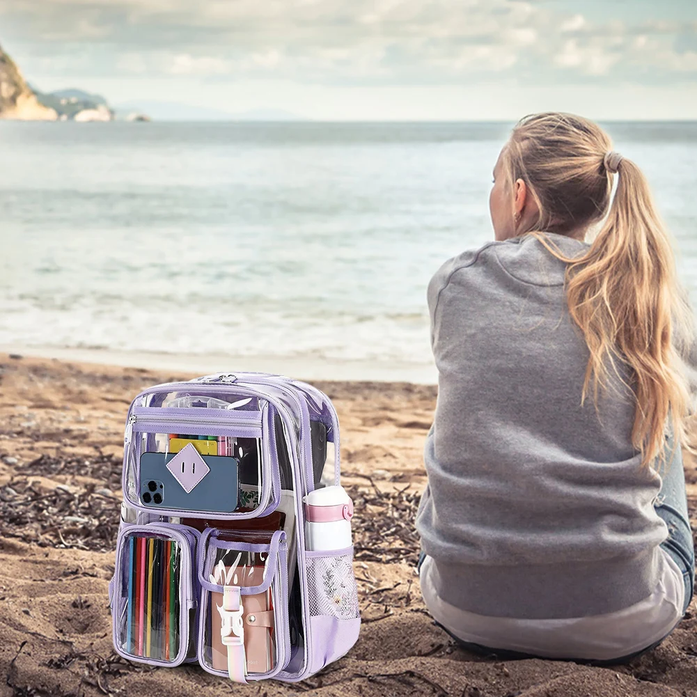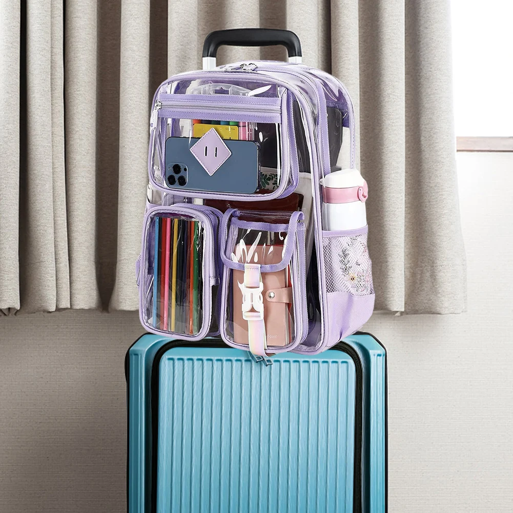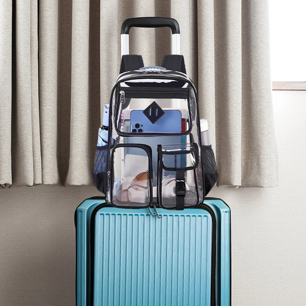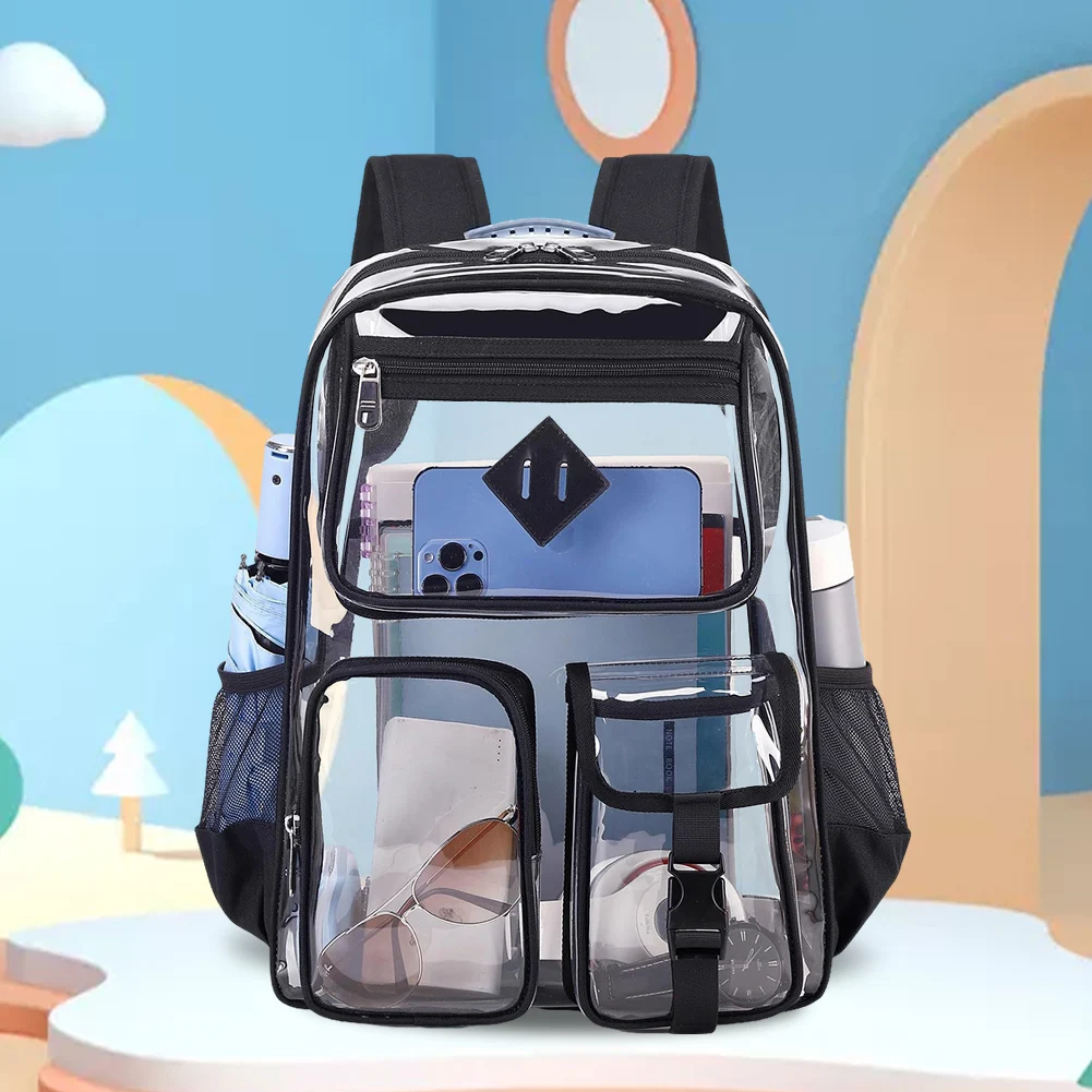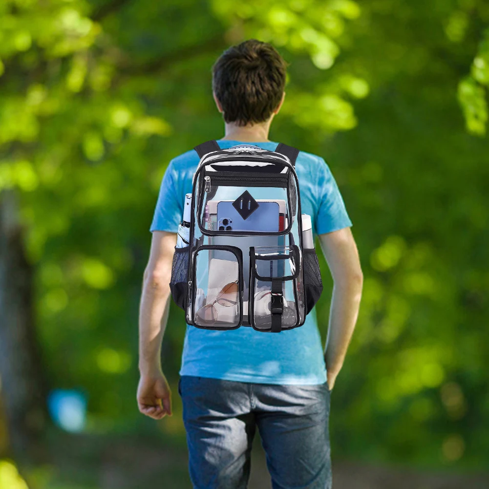 5.Versatility: Waterproof casual laptop backpack suitable for various occasions such as college, workplaces, concerts, airports, sports events, outdoor activities, hiking, camping, beach; ideal transparent backpack for kids aged 8 and above.