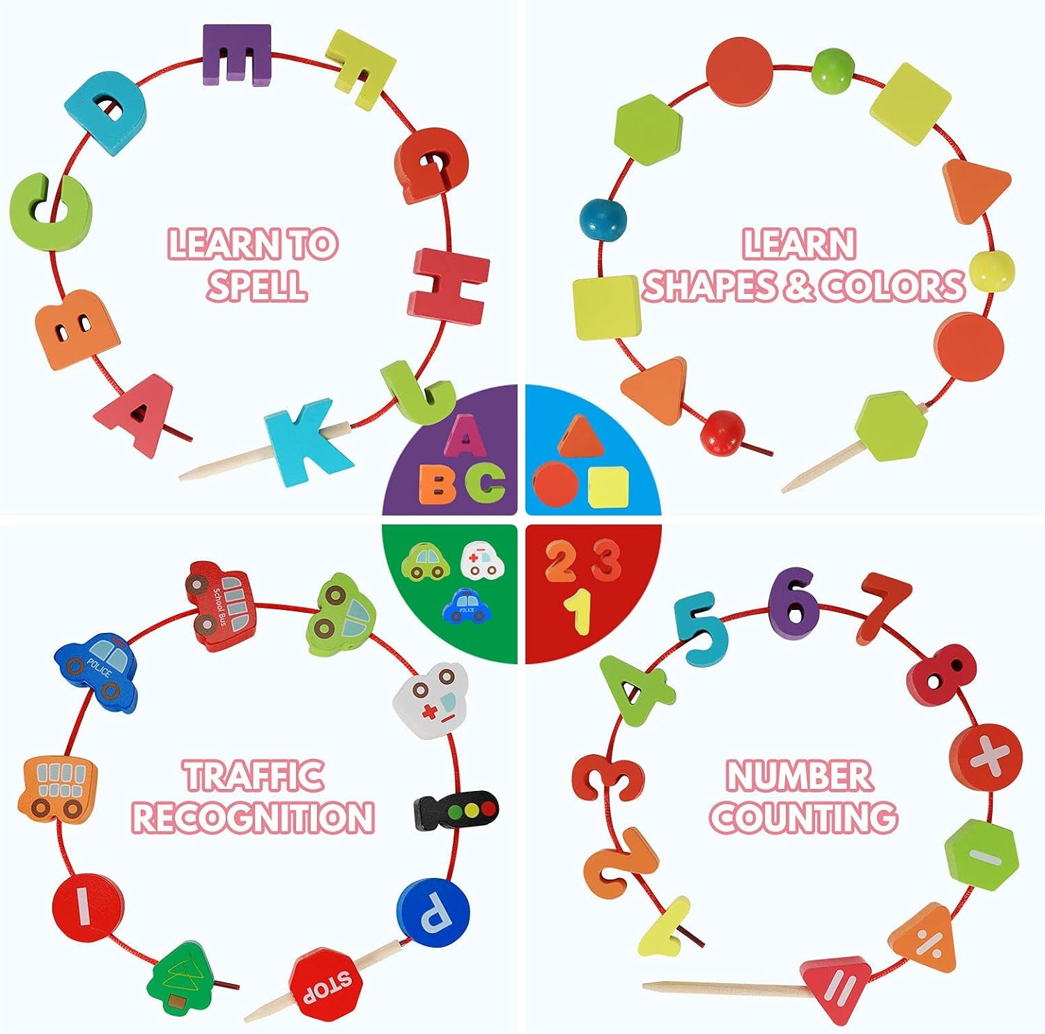 • 【Montessori Wooden Toys for 3 4 5 6 Year Old Boy Girl】- Toddlers Montessori toys is suitable for preschool kids baby! For 36 month old babies to learn numbers 0-9, alphabet letters A-Z, geometric figures and colors, as well as to satisfy the curiosity of 3 years old kids about animals, this wooden stringing toys provides a fun way for toddler to learn new things. The perfect montessori wooden toys is an ideal toy gifts for 3 year old girls and boys.